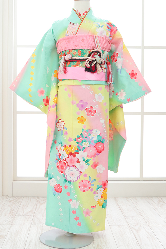エメラルドグリーンや水色にグラデーションカラーが入ったお着物は人気ナンバーワン!