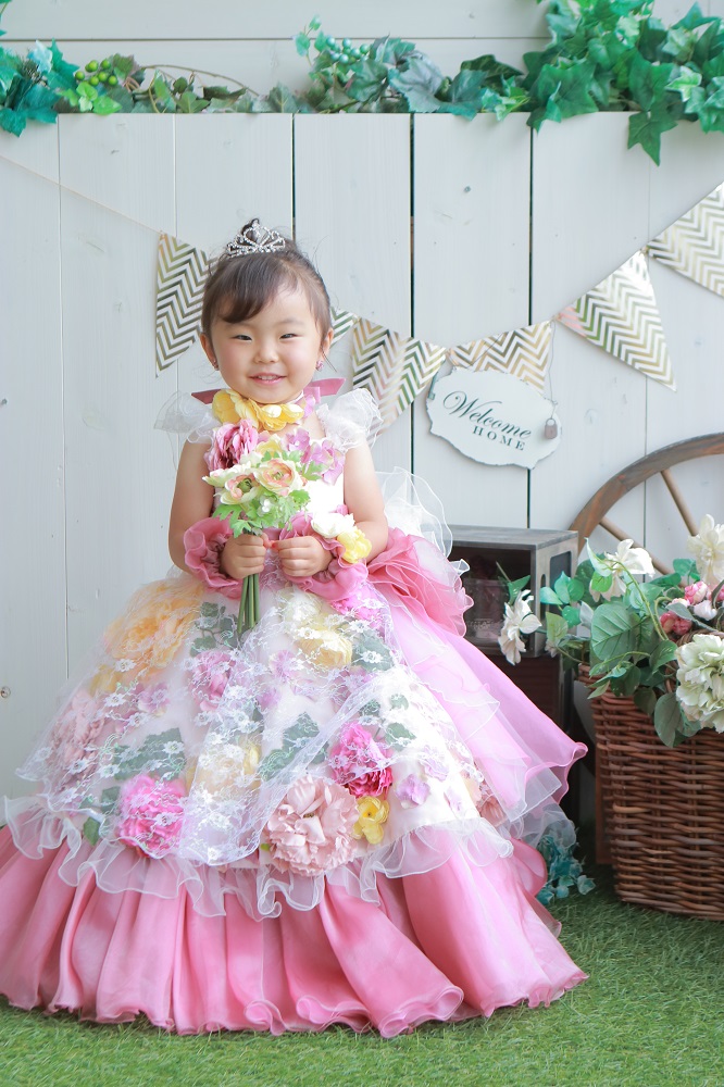 3歳さんの衣装で1番人気なのはこピンクのお花が散りばめられた可愛らしい子の衣装!!