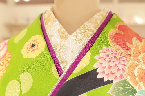 半衿と振袖の間に入る部分で、襟元を彩るおしゃれ小物です。