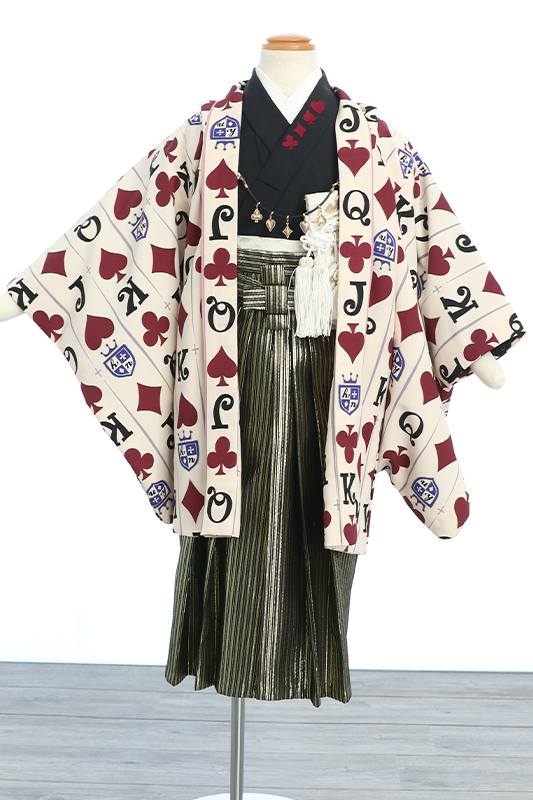 こちらのお着物は、羽織にトランプのスペードやハートなどのマークが描かれており、周のお子様と被りにくい衣裳です!!