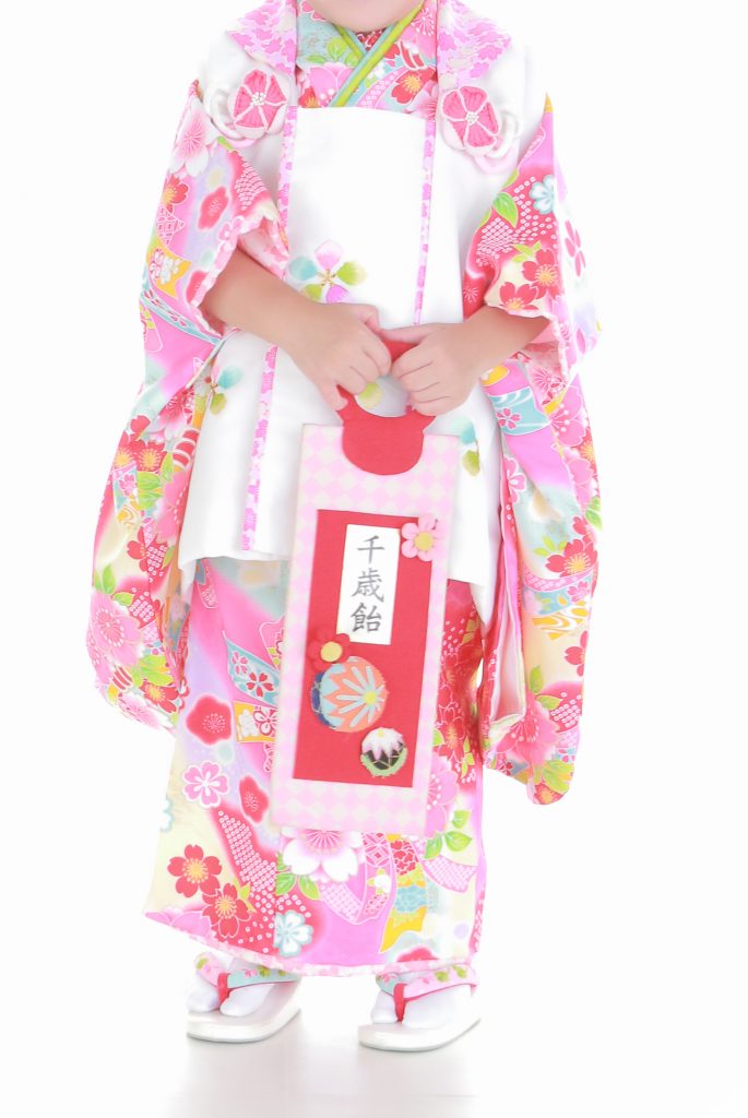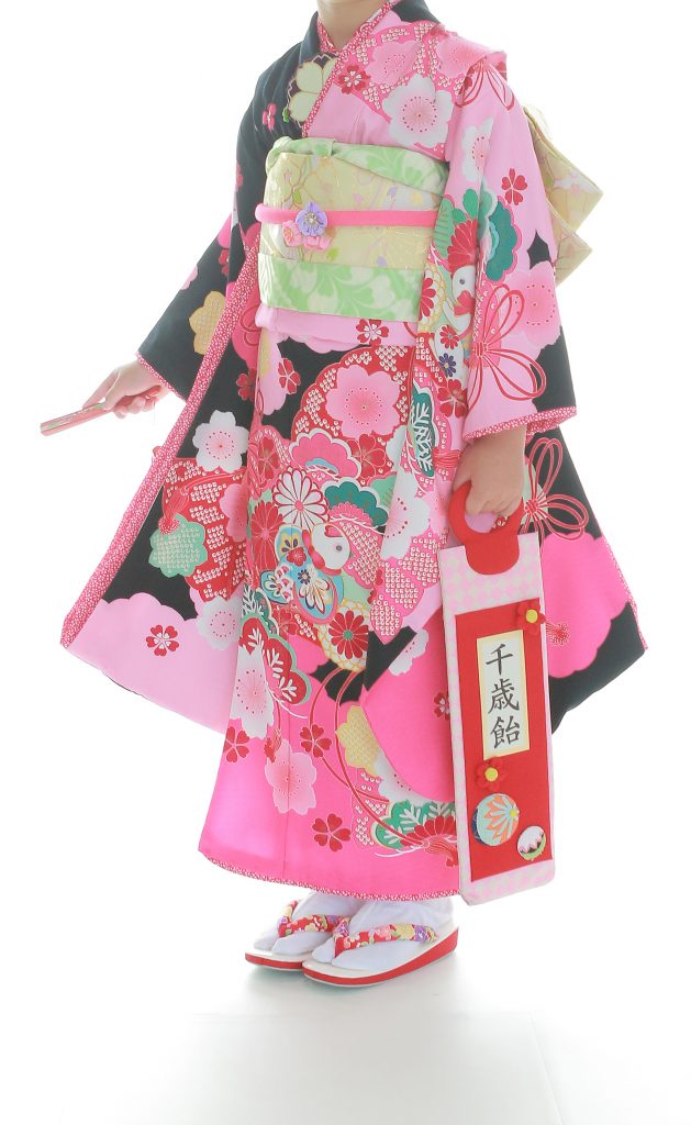 7歳の人気色である、紫とピンクが入ったこちらの着物も大人っぽい雰囲気があります!