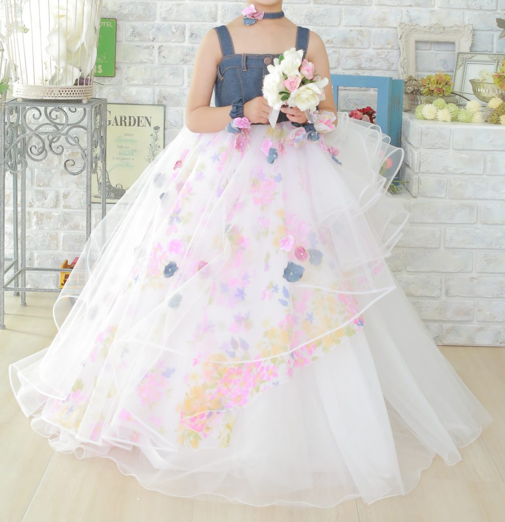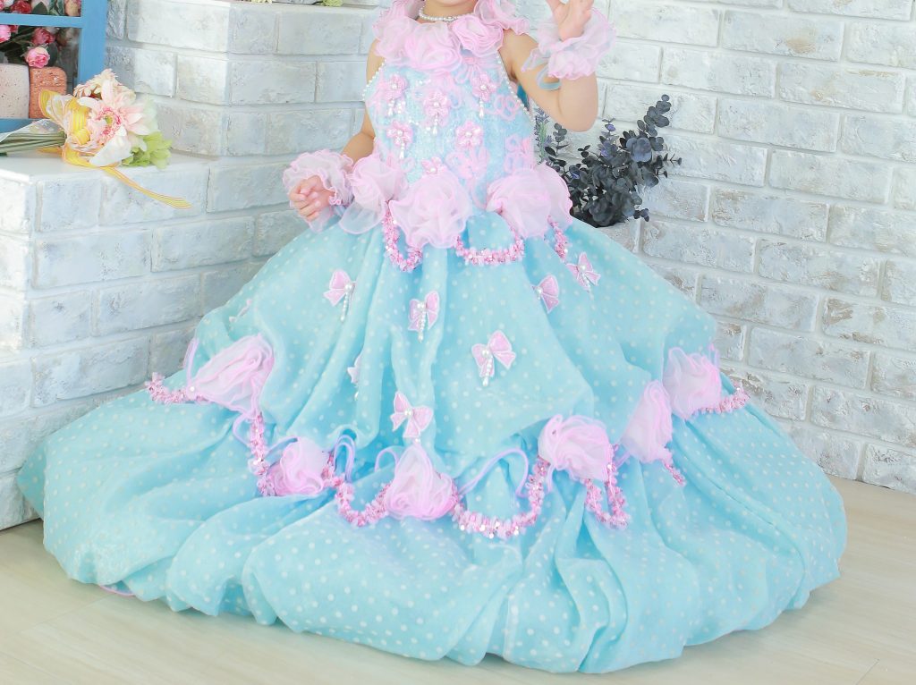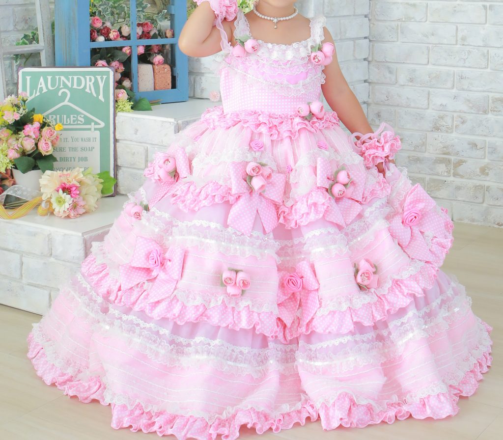 こちらのドレスはピンクのバラやフリルが付いた、こちらも可愛いドレスです!