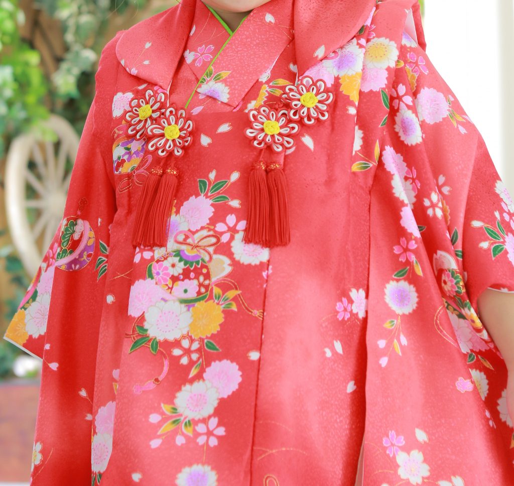 着物が赤色で、被布が白の紅白色の縁起がいい色合いです!