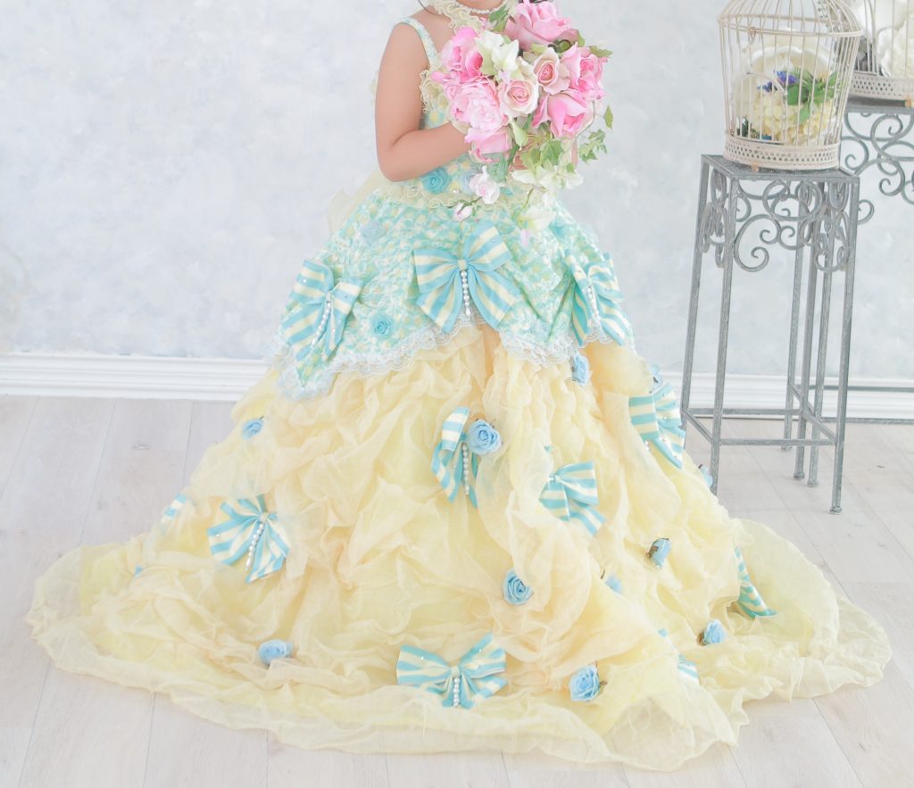 こちらのドレスはフリフリがたっくさん付いていて、リボンやバラなど