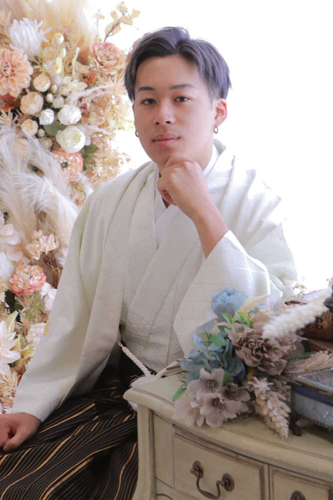 こちらの成人さんは袴+このように制服での撮影をしてくれました☆それぞれの個性が出て撮影をしていてもとても楽しいです♪お気に入りの制服、スーツを着用して撮影にいらしてくださいね!こんなのを着たいのですが...などございましたらスタッフにご相談くださいませ!