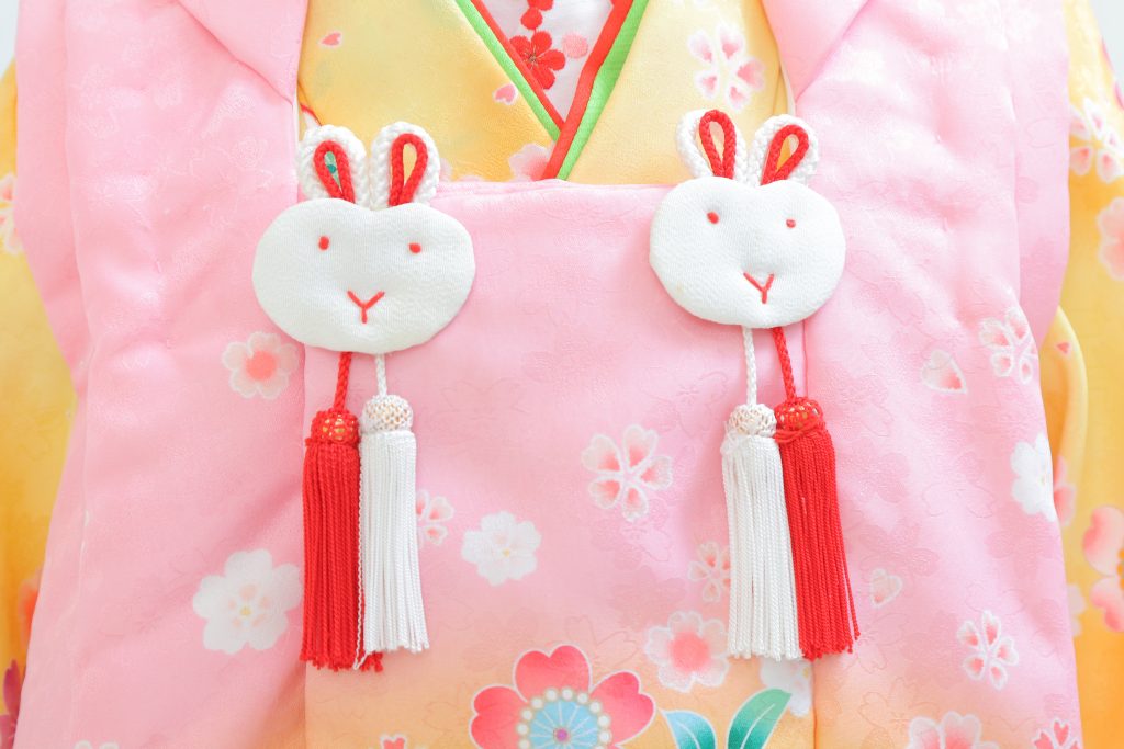 被布の飾り紐は、おめでたい赤と白色のうさぎです!