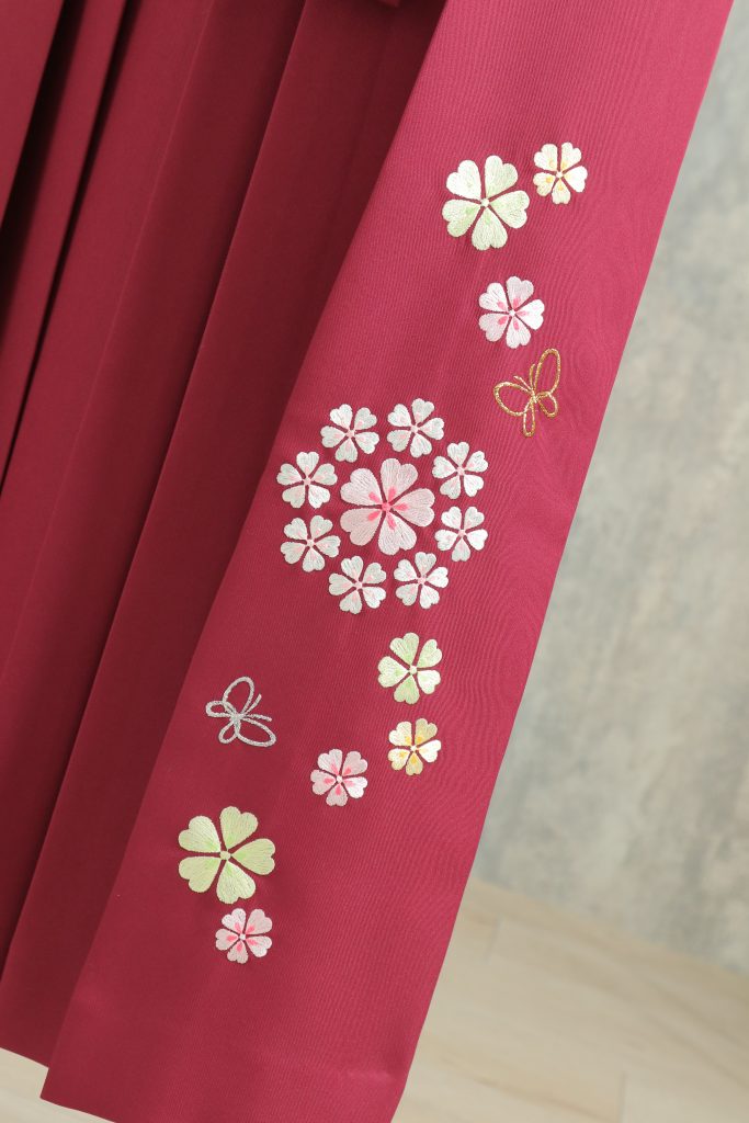 最後にご紹介するのは、えんじ色に少しピンクの入ったお色の袴です(*^_^*)