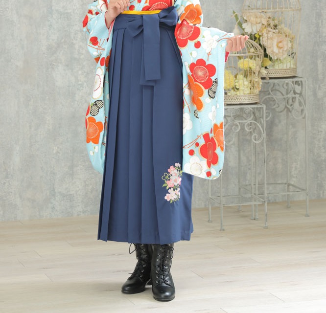 こちらは袴の裾部分に刺繍が入っている袴となっております!刺繍の柄は袴ひとつひとつによってデザインがことなってきますので、お好きな刺繍の柄を選んでくださいね!