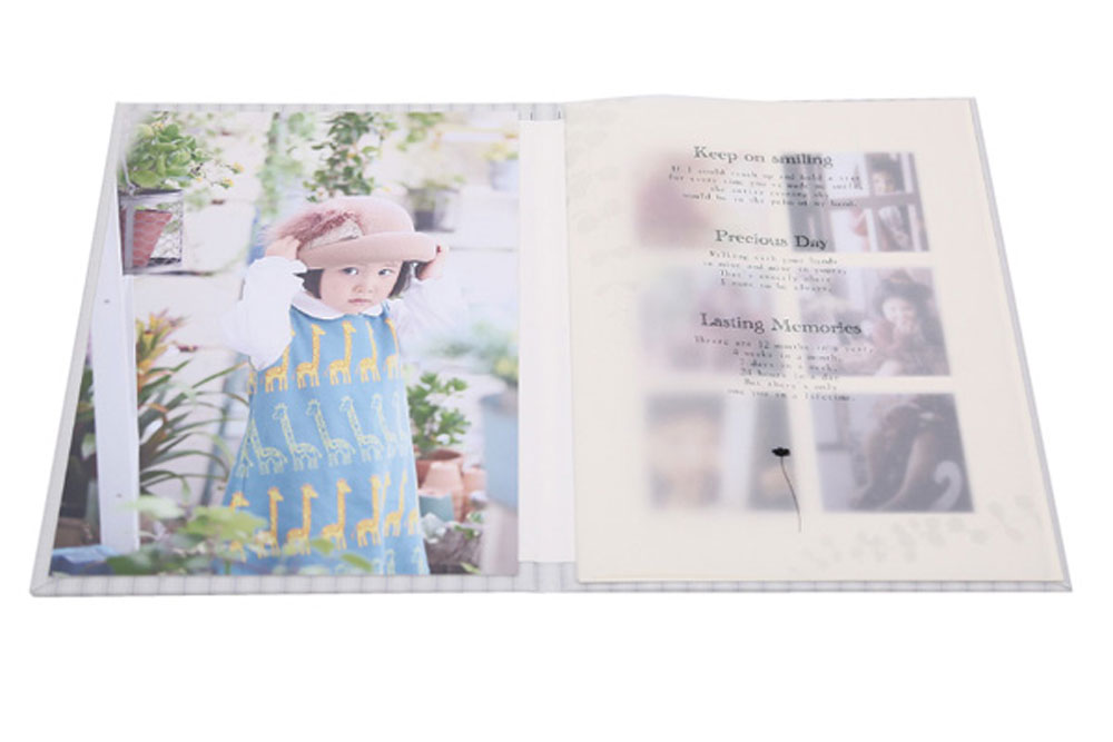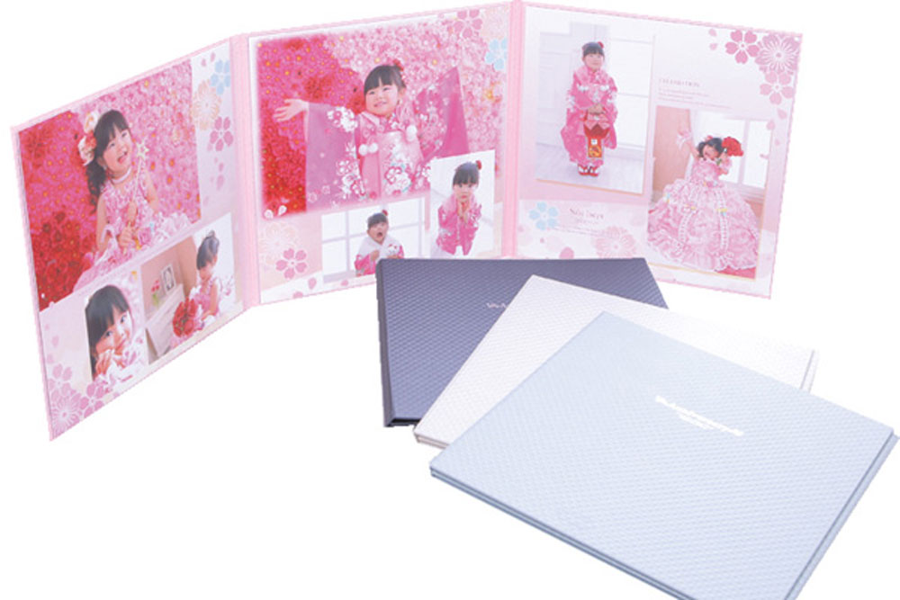3面台紙タイプのアルバムで、色は水色・白・ピンク・ガンメタの4色から選べます。 カット数も8c 10c 12cと3パターンありますので残したいお写真の枚数に応じて残すことが出来ます。