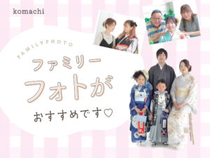 家族撮影もご希望があれば撮影可能です!ご家族様のきものレンタルもご希望の場合はお申しつけください。