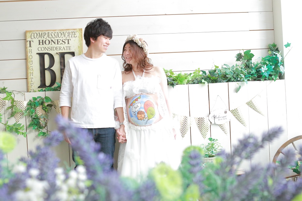 せっかくなら、今だけしか撮れない!というお客様がほとんどの“マタニティーペイント”も人気です♪