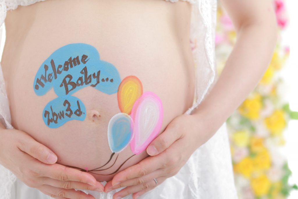 これから産まれてくる赤ちゃんが元気に育ってくれますように!と妊婦さんの大きなお腹に絵を描く新しい『おまじない』です♪