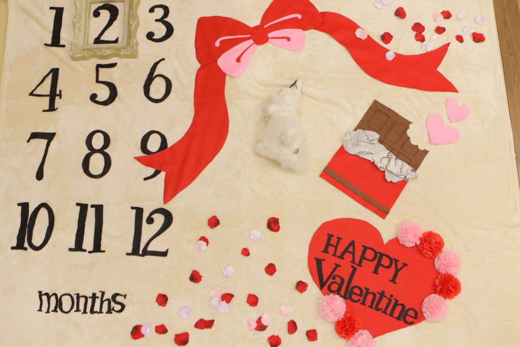 バレンタイン限定のベビーアートとなります♪1か月~5か月のお子様のこの時期にしか残せない記念写真です!!是非この機会に撮影してみてはいかがですか?