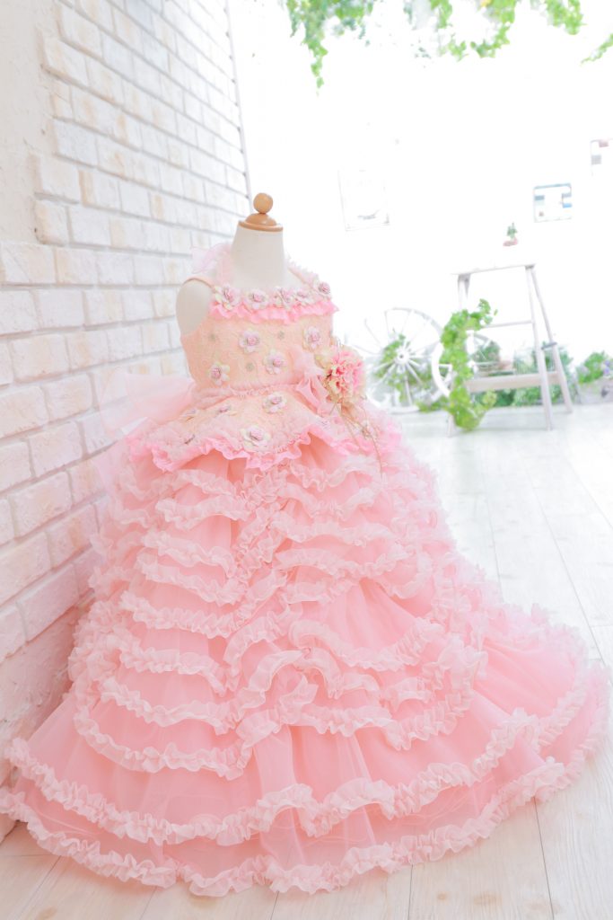 沢山のお花とレースが可愛い7歳さんの人気ドレスです♪