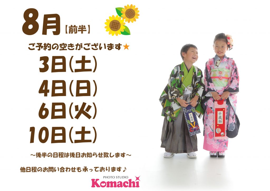 本日は8月のご予約の空き状況のお知らせをさせて頂きます♪