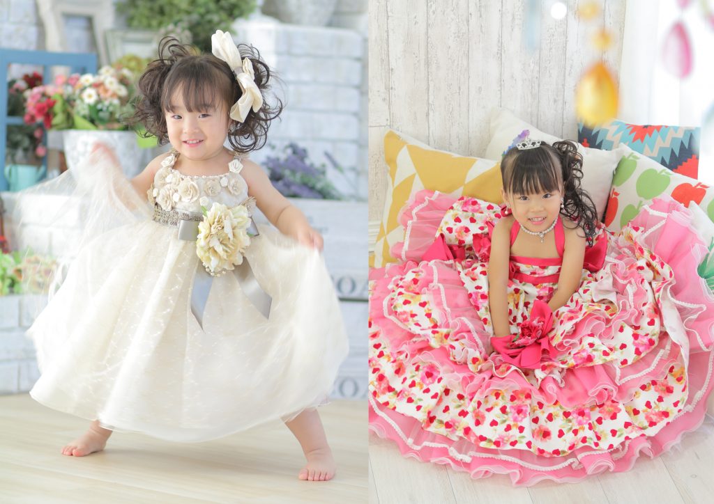 右側のハート柄のドレスはよりかわいい雰囲気に♡