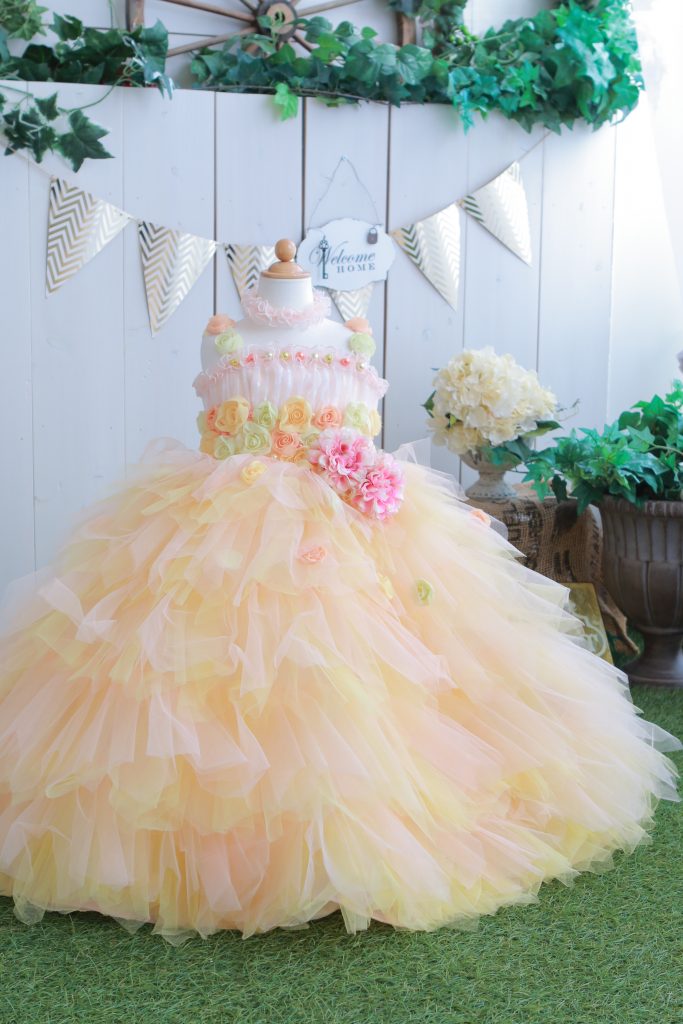 人気NO2はみんな大好きディズニープリンセス「ベル」色の黄色とオレンジのチュールドレスです!