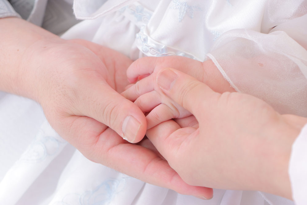 またお宮参りでしか撮影出来ない、赤ちゃんとパパとママの手の写真も素敵で人気があります♡