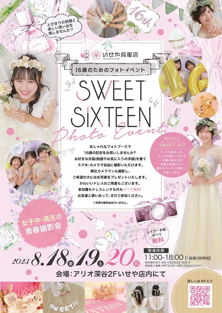 【無料フォトイベント】SWEET SIXTEEN 予約受付中!