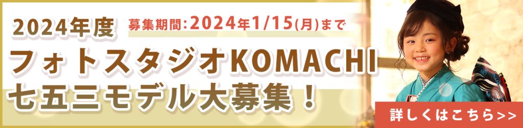 可愛い盛りの三歳・五歳・七歳。フォトスタジオ「Komachi」は、 ご家族の晴れやかな記念日である七五三を真心込めてサポートいたします。 本格的な衣装やスタジオにお子様自身もちょっぴりドキドキ……。 いつもと違う表情に成長が感じられる日です。パパとママも着物を着たら、家族のスペシャル記念日に!