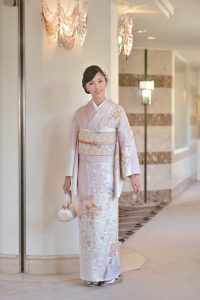 礼装着は、特別な時(ハレまたはケ)や公的な儀式などに着るものです。ちなみに、ミスの第一礼装着は花嫁衣裳や本振袖の五つ紋付。つまり結婚式には独身最後の晴れ姿で臨むわけです。