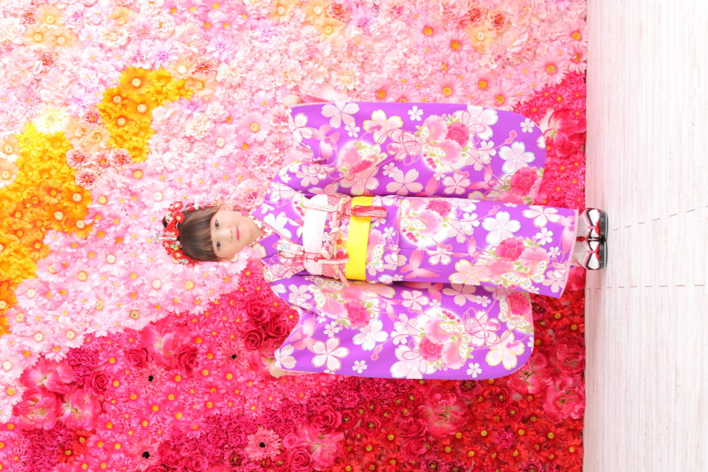 こちらは鴻巣店のお花の壁です!!!とっても鮮やかで可愛らしい背景なんです!お袖を広げて頂いて華やかさアップですね!お着物のお袖の柄もお写真に残しておくと、後々ご覧になったとき、楽しいかもしれませんね!