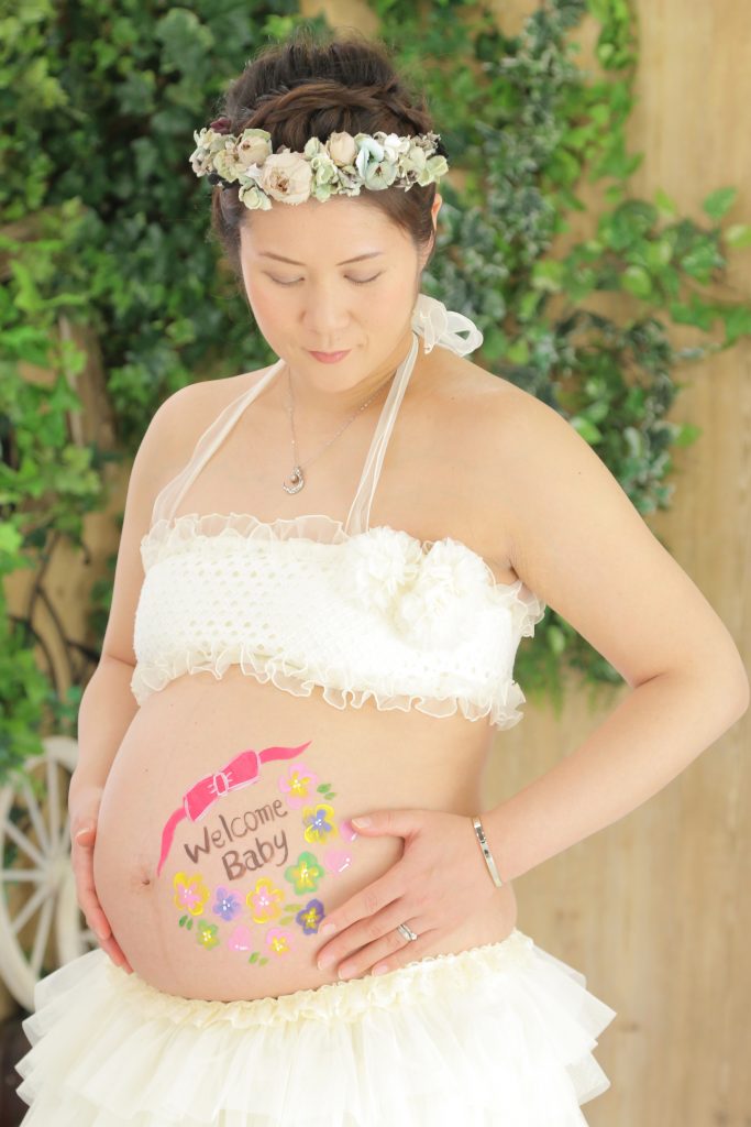 と安産祈願を込めて妊婦さんの大きなお腹に絵を描く新しい『おまじない』です♪