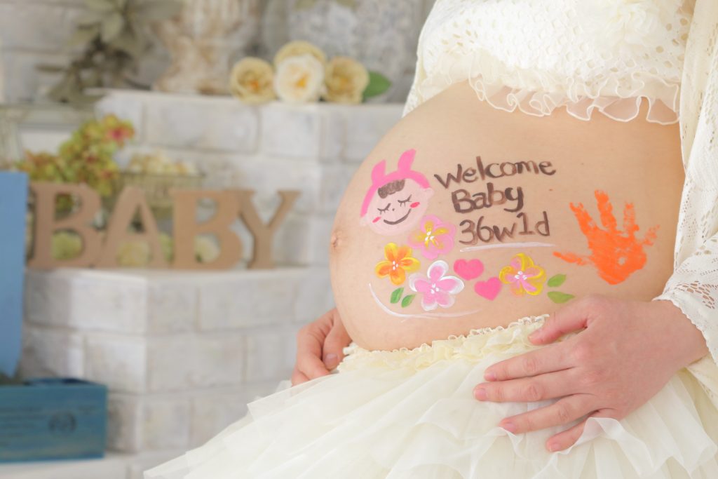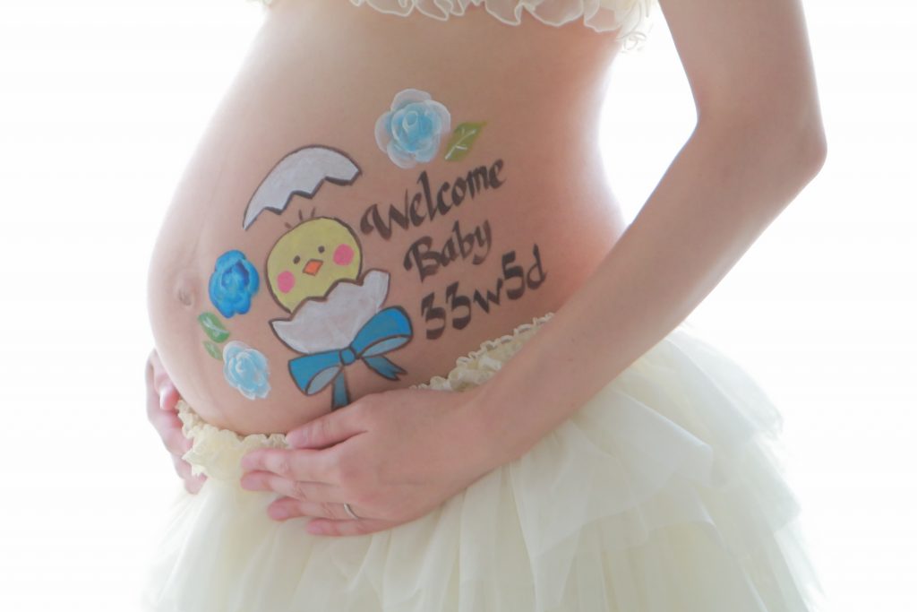 妊婦さんの大きなお腹に絵を描く新しい『おまじない』です♪