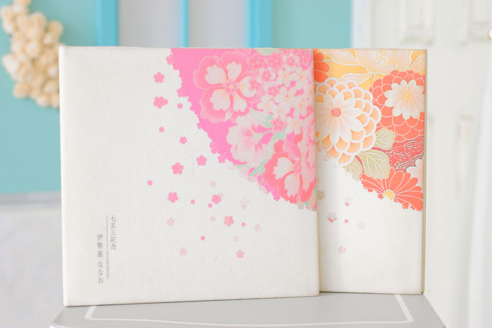 表紙にはお子様が着用したお着物の柄が入りますので、特別な一冊をつくることができます♪
