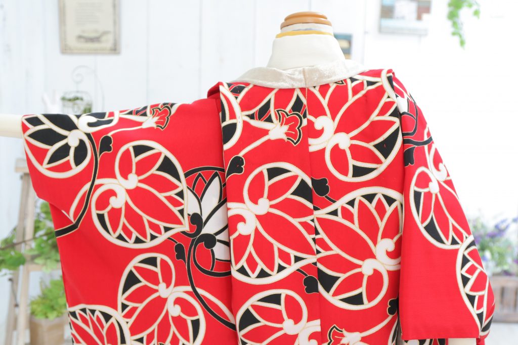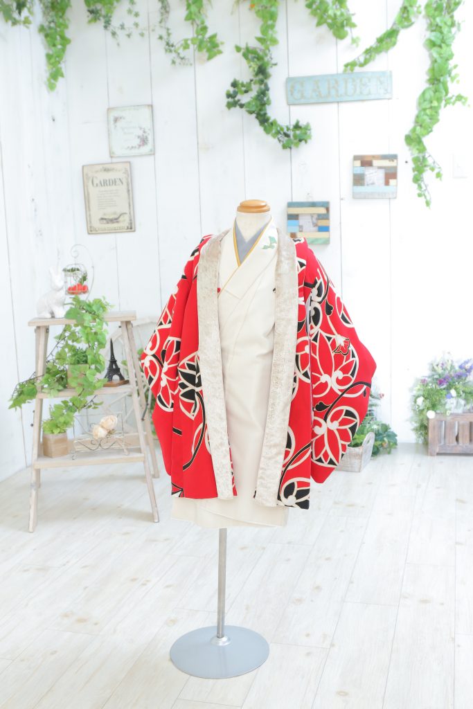 まずはこちらの赤の羽織と白のお着物のお衣裳から!