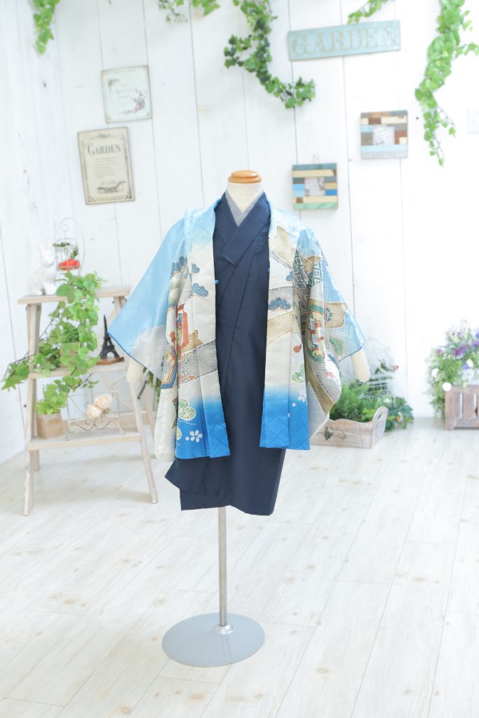 最後はこちらの水色の羽織に紺色のお着物のお衣装です♪