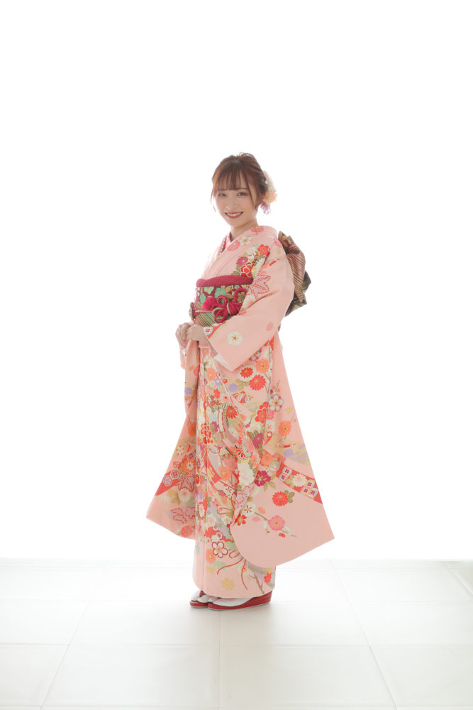 成人では、着物の柄がしっかり見える型物の全身写真を撮影いたします♪