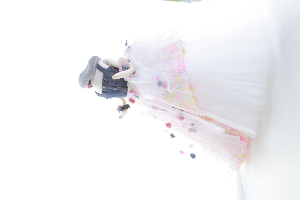 デニム生地を使ってカジュアルさをだしつつもスカートの部分は柔らかい雰囲気のお花模様(*´ω`*)