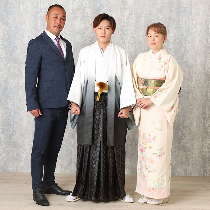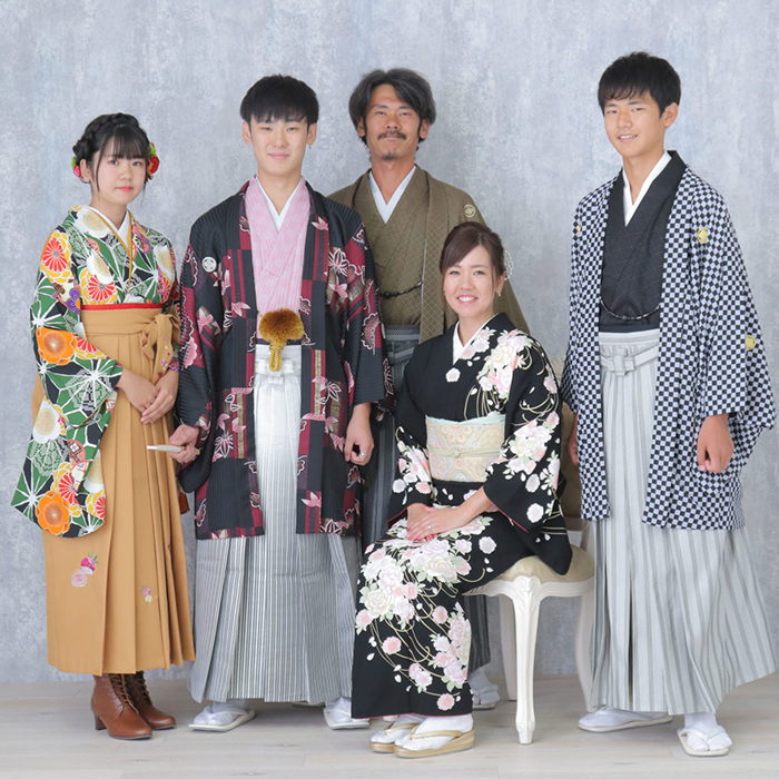 成人男性の袴プランをお申込みの場合、ご家族の着物が割引でレンタルでき、ご家族撮影は無料です。