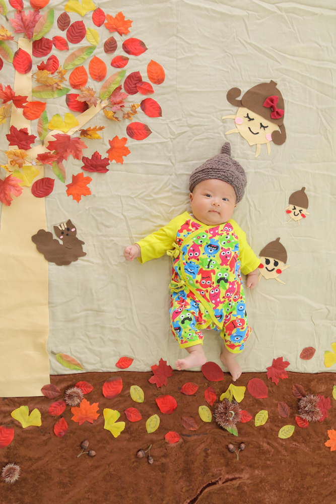 撮影料550円で生後1ヶ月~5ヶ月のお子様が寝転がったかわいいお写真が撮れます。