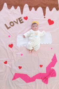 撮影料550円で生後1ヶ月~5ヶ月のお子様が寝転がったかわいいお写真が撮れます。