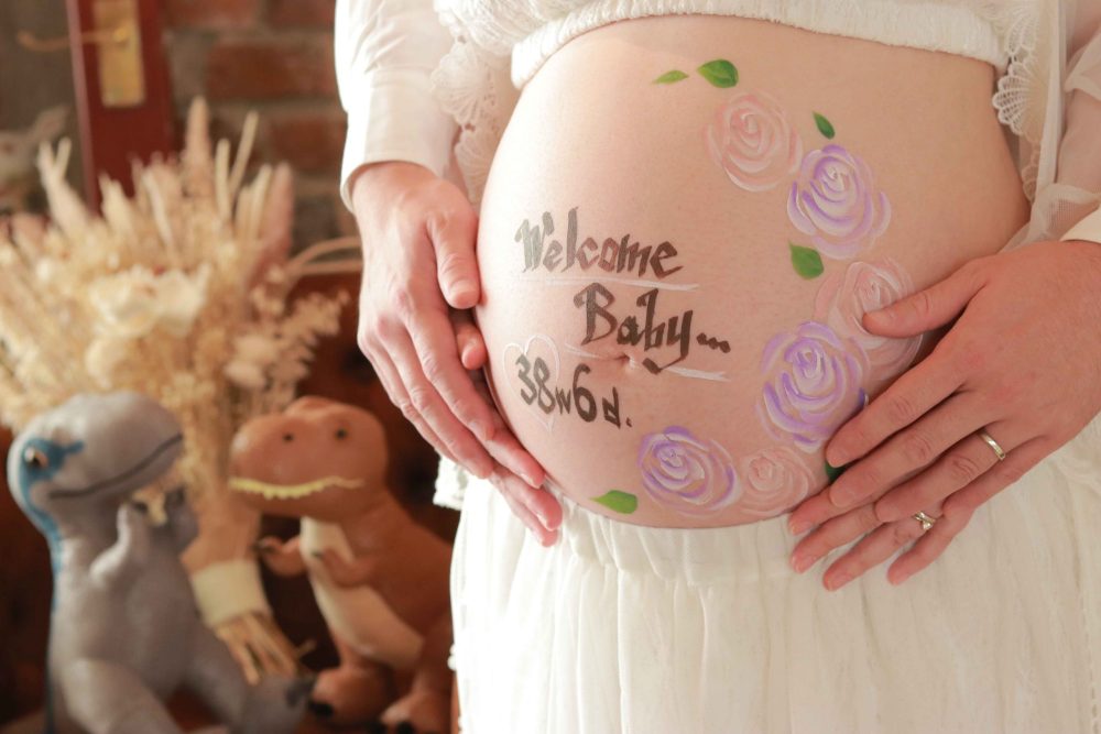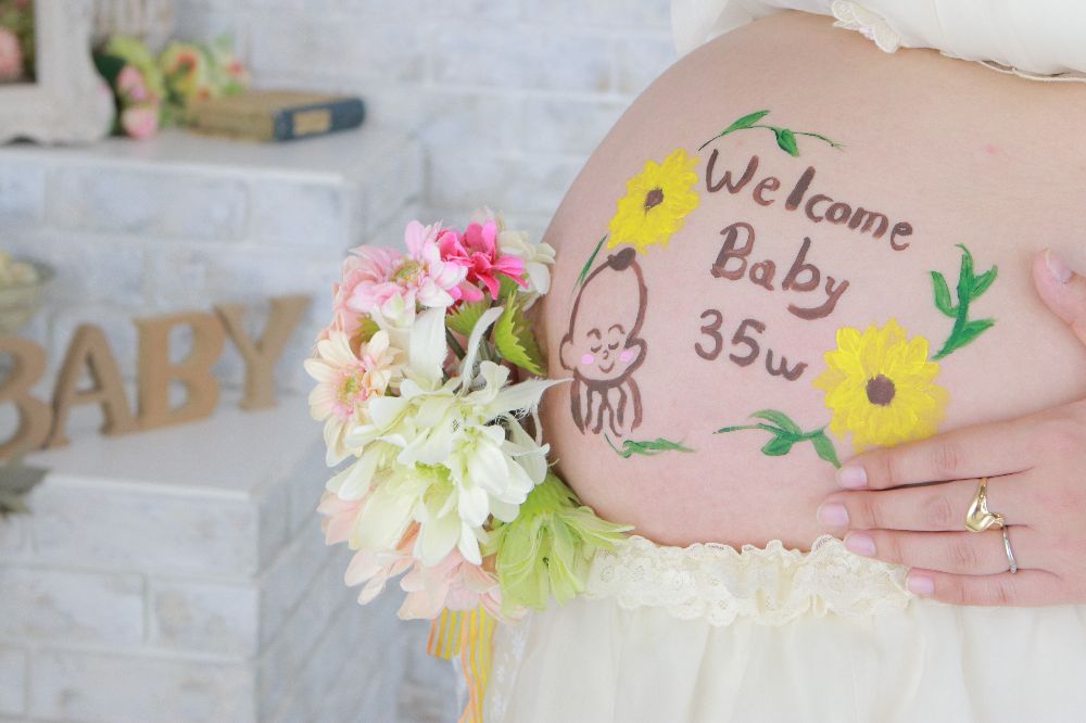 ママのお腹の半分にかわいいペイントをさせて頂きます♪