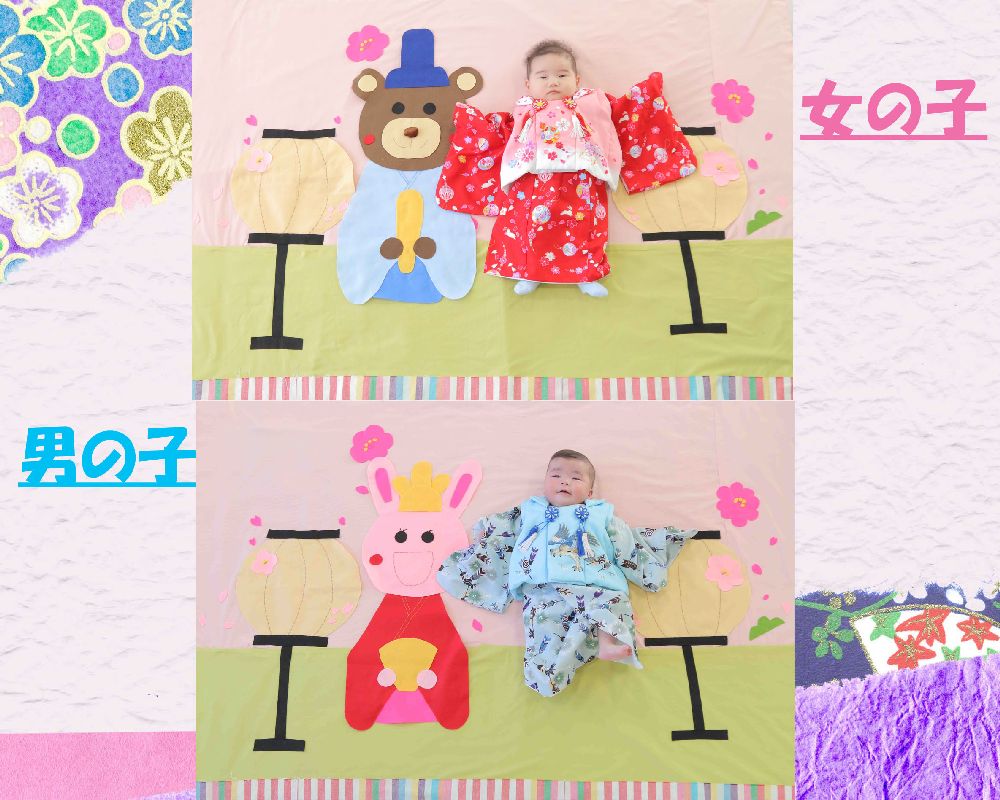 撮影料550円で生後1ヶ月~5ヶ月のお子様が寝転がったかわいいお写真が撮れます。