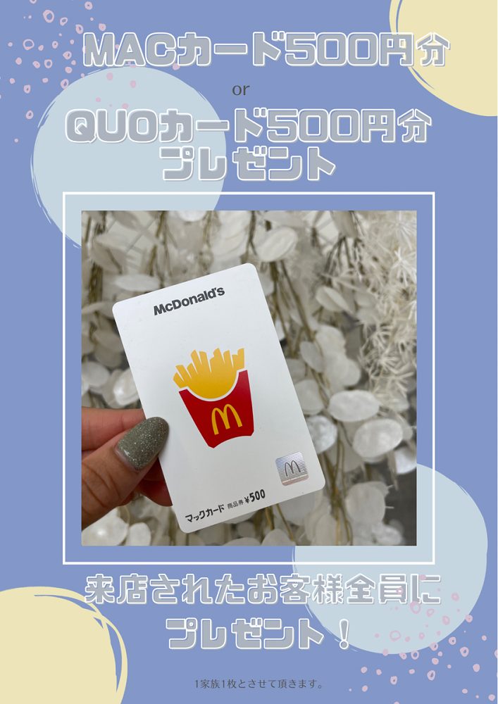 “マクドナルドのマックカード500円分”or“QUOカード500円分”プレゼント!!🎁