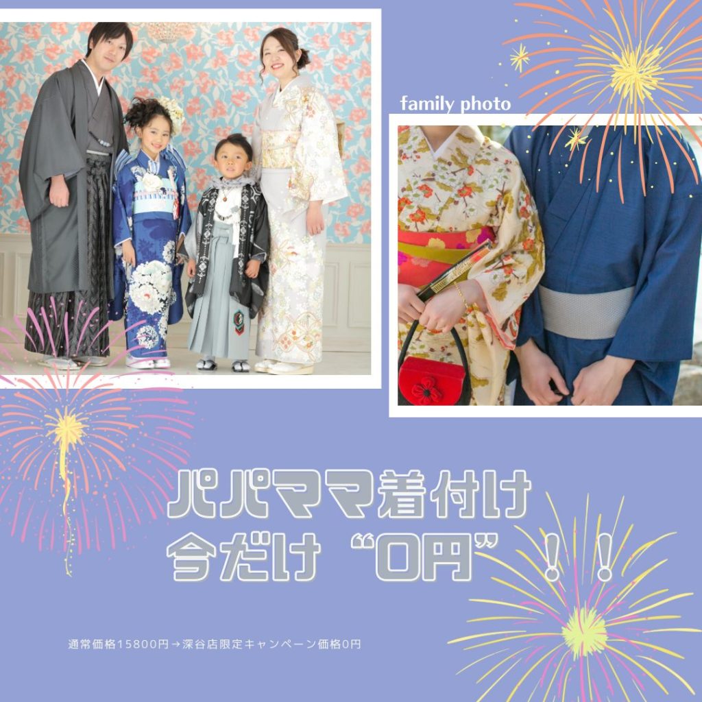 七五三で“着物で家族写真”を!パパママ着物プランが休日・平日どちらも“0円”!!